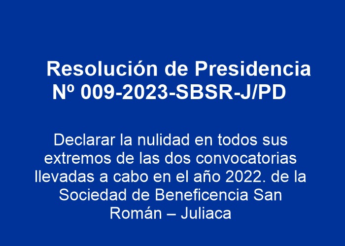 Resolución de Presidencia Nº 009-2023-SBSR-J/PD